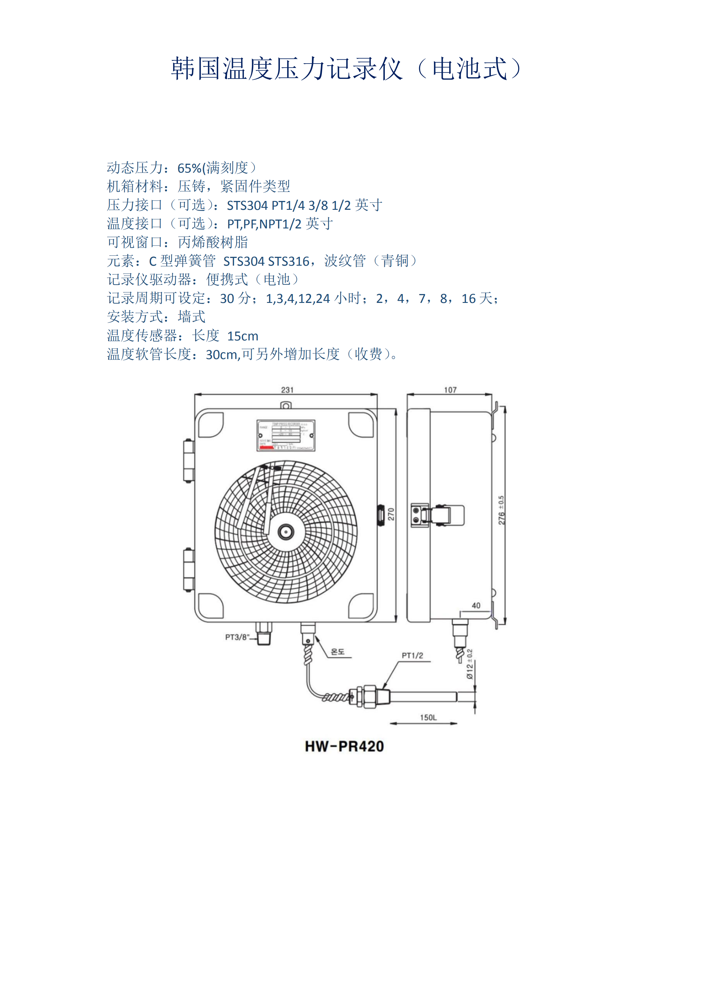 hanwool圓盤壓力記錄儀PR320