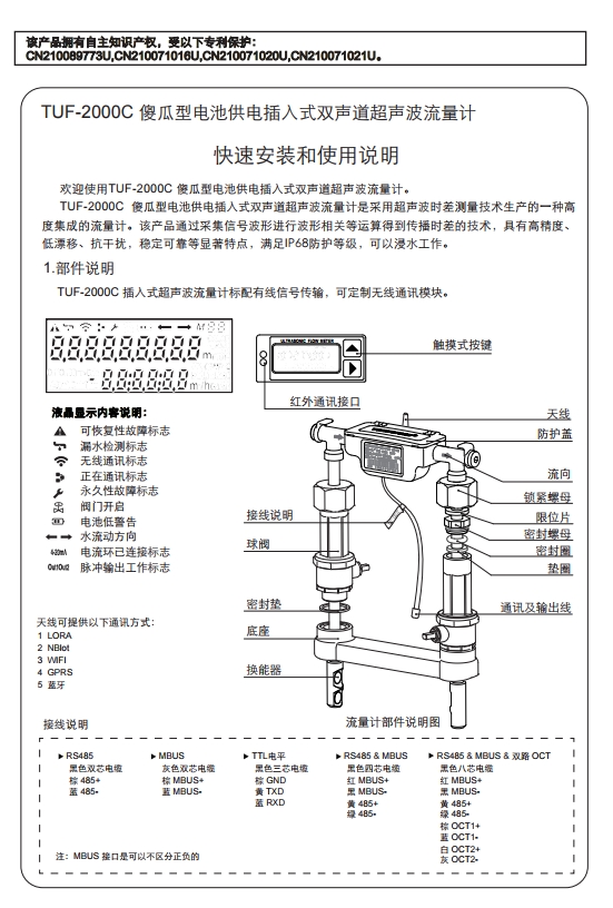 TUF-2000C傻瓜型電池供電插入式雙聲道超聲波流量計(jì),是采用超聲波時(shí)差法測量技術(shù)生產(chǎn)的一種高度集成的流量計(jì),該產(chǎn)品通過采集信號波形進(jìn)行波形相關(guān)等運(yùn)行得到傳播時(shí)差的技術(shù),具有高精度,低漂移,抗干擾,穩(wěn)定可靠等顯著特點(diǎn),滿足IP68防護(hù)等級可以浸水工作