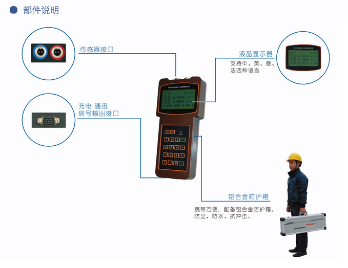 手持式超聲波流量計在使用過程中安裝簡單,體積較小且質量輕是國內比較常用的一款臨時巡檢專用的儀表,且內部有數據存儲功能可以實現中英文轉換也是出口。國外應用較多的一款儀器手持式超聲波流量計在工業現場中各種流量的在線標定和巡檢測量過程中是應用較大的,也是國內外廣大客戶比較青睞的一款產品